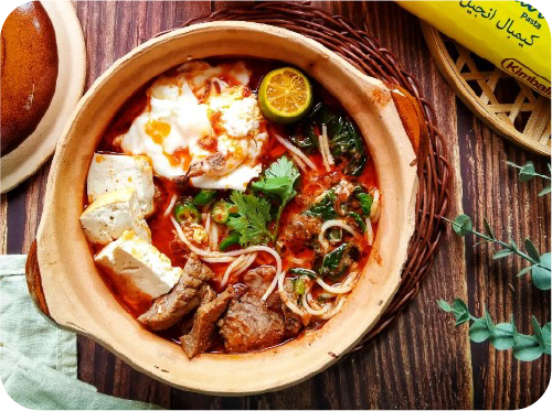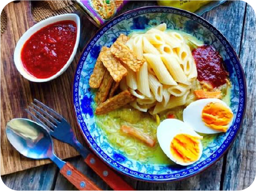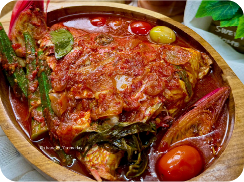 limau nipis dan tomato jika suka.Rasa lemak, masam, pedas & segar.